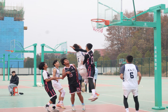 比赛现场高潮迭起,球员们运球突破如疾风闪电,精准长传似心有灵犀,三分远投划出完美弧线,引得观众席惊呼连连。小组赛阶段,多支队伍上演“逆转好戏”,比分胶着至最后一秒;淘汰赛更是悬念丛生,在文化旅游产业学院与土木与建筑工程学院八强战中,双方比分交替领先达十余次,最终凭借一次压哨跳投惊险晋级。决赛之夜更是将赛事推向沸点:专用汽车与应急产业学院与信息工程学院展开终极较量,双方攻防转换迅捷如电,第三节末段专用汽车与应急产业学院队长申兴正连续三次突破上篮得手,点燃全场气氛;末节最后30秒,信息工程学院发起疯狂反扑,三分球命中,但专用汽车与应急产业学院凭借稳固防守守住胜局,终以 74:62锁定胜局。