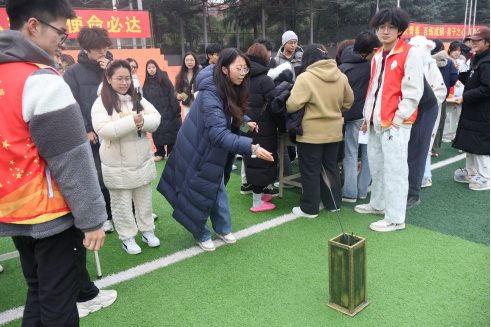冬至游园会热闹开启,猜灯谜、传统剪纸、投壶、金鸡独立等特色活动轮番登场,师生们在趣味互动与民俗体验中,解锁冬至的别样乐趣,让校园洋溢着浓浓的节日氛围。